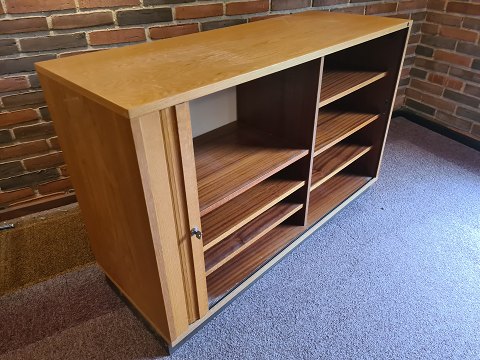 Arkivskab fra 1980'erne i finéret eg med jalousi låge. Fremstår pænt og velholdt, dog med lettere brugsspor på toppen. (Billeder) Forskellige indretningsformer haves. (Billeder) Fungerende nøgle medfølger.