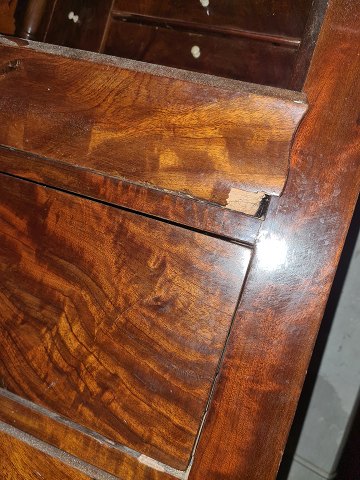 Chatol i mahogni m. cylinderklap. Har en skade nederst på øverste skuffe til højre. (Billede)(HxBxD 115x115x57 cm), 1860-1880 |