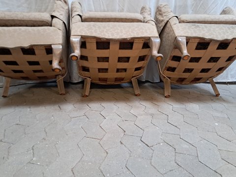 3 Lænestole med stofbetræk, fra 1920erne.