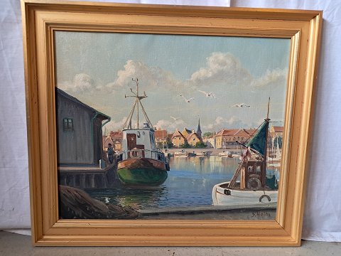 Maleri af S. Holm, i guldmalet ramme fra 1950erne.