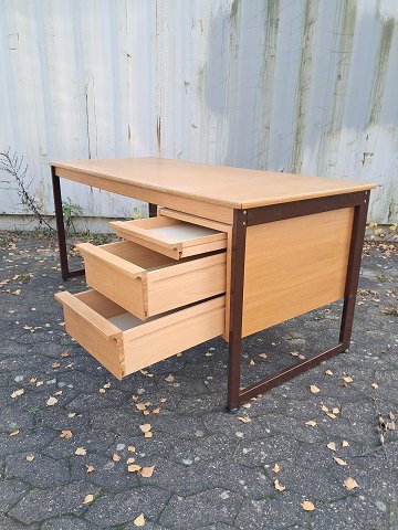 Skrivebord i fineret egetræ og metal, fra 1980erne.