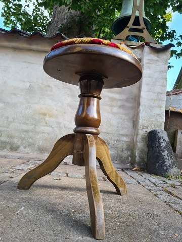 Taburet fra 1950'erne i mahogni og med broderi. Fremstår pæn og velholdt uden nævneværdige brugsspor.