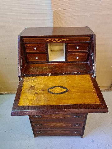 Kommode med skriveplads i fineret mahogni fra 1910erne.