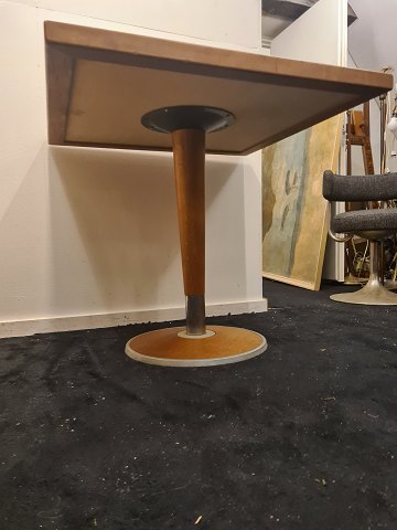 Kvadratisk spisebord udført i fineret eg, metal samt plade i sten imiteret laminat.