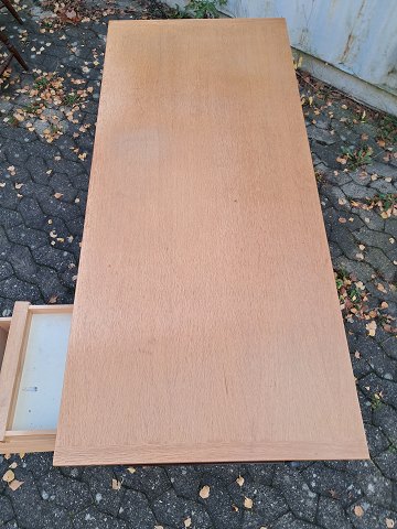 Skrivebord i fineret egetræ og metal, fra 1980erne.