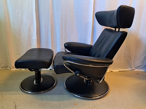 Stressless model Jazz læder lænestol med fodskammel, fra 2010erne.