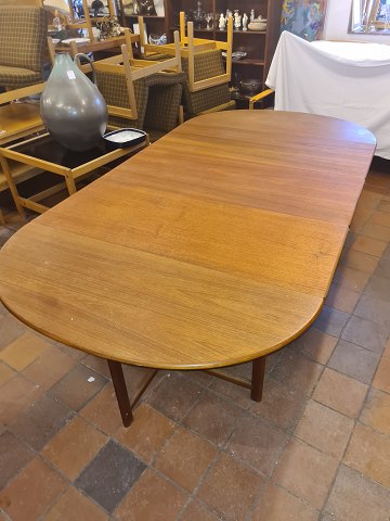 Ovalt bord i teak m. udtræk. Kr. 2800,-