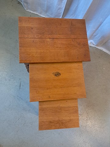 3 Indskudsborde i massivt egetræ, fra 1980erne.