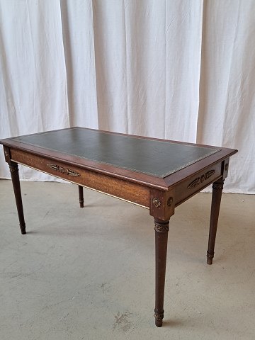 Sofabord i fineret mahogni med kunstlæder indlæg, fra 1980erne.